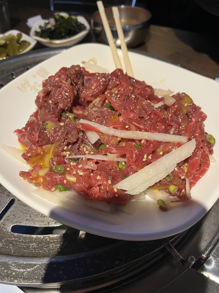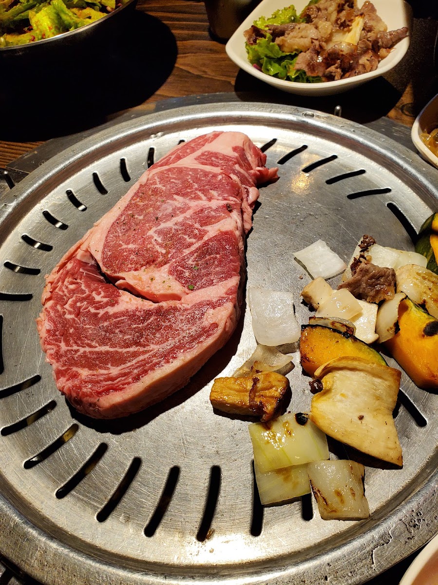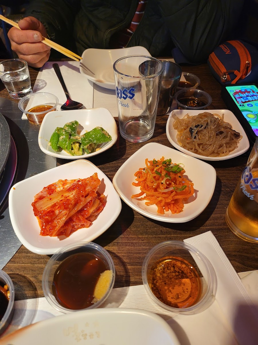 From experience, the real move is ordering a mixed platter and letting it cook until the edges caramelize. The staff usually recommends waiting, even when you’re tempted to dig in early. That patience pays off. When the server finally gives the green light, they cut everything into bite-sized pieces and toss in garlic, green onions, and sometimes kimchi to soak up the rendered fat. It’s communal, hands-on, and honestly pretty fun. One table next to us was celebrating a birthday, and the shared grill made it feel more like a house party than a restaurant.